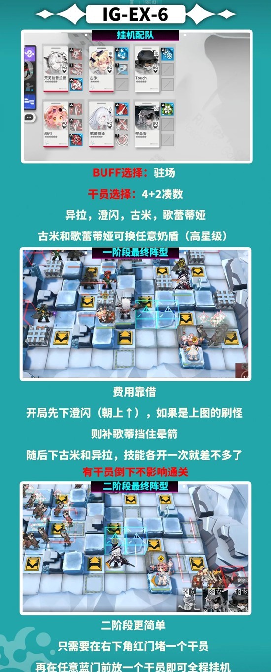 干员选择:4+2凌数,异拉,澄闪,古米,歌蕾蒂娅,古米和歌蕾蒂娅可换任意奶盾(高星级)
