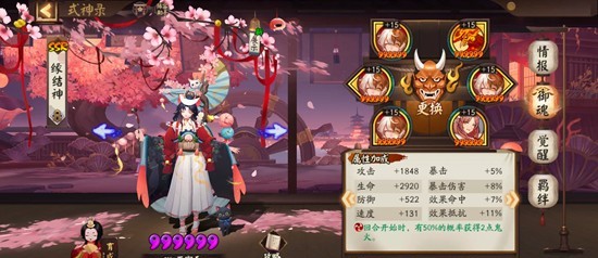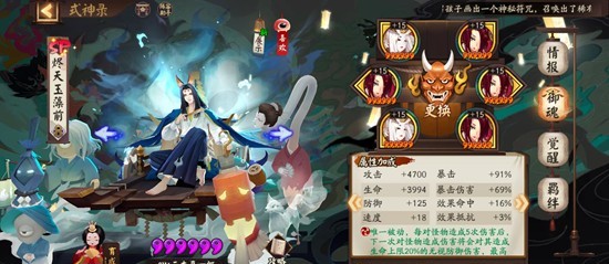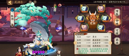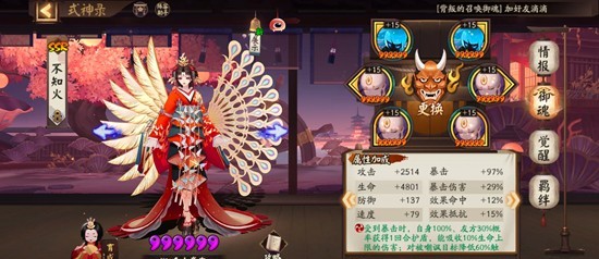 以上三个式神配齐之后再带一个输出+一个拉条,我是兔子和sp大舅。兔子带火灵,速度其实没什么要求,100+就可以。没有sp大舅也可以换成别的输出,因为这套阵容输出不是重点,纯粹一点点磨过去的,有什么用什么就可以。神乐带疾风,鲤鱼精解掉河童debuff之前看顺位和余火给椒图/鲤鱼精/缘结神。因为这套阵容会断火,所以要优先保证椒图大招不断,然后尽可能让鲤鱼精多行动,如果血条低于70%了让缘结神及时奶一口,不知火普攻大招灵活切换。