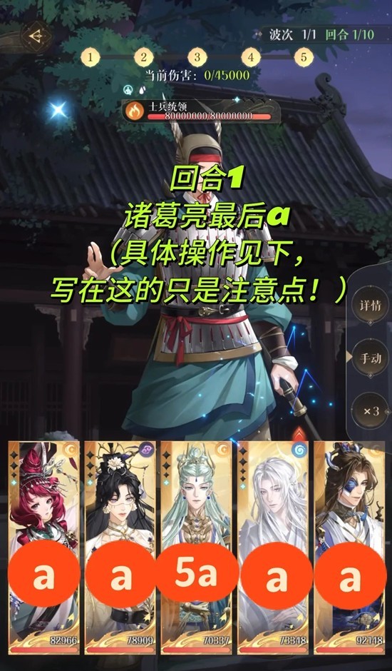 诸葛亮平a/开大有概率引爆敌人身上所有dot伤害,放在最后行动(有孔融还是孔融最后)。