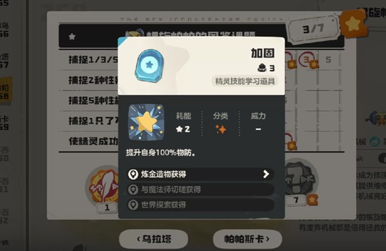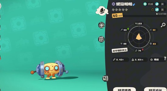 为了进一步提升螺旋帕帕的战场存活率,学习加固技能是一个不错的选择,该技能可直接提升100%物理防御,大幅增强其抗击打能力。在团队作战中,螺旋帕帕不仅能承担前排抗伤职责,还能为同属性的机械系伙伴提供维修支持,具备一定的辅助功能。这种攻防兼备的定位,使它在PVE副本和部分PVP对局中都有一席之地。