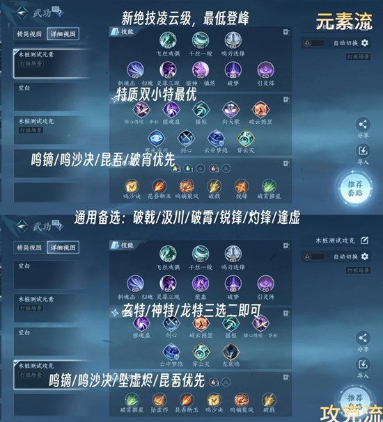 新绝·鸣刃优先抽满,最低登封。群侠卡手情况可保留李飞卿群侠。元素双小特,目前赛季破云特质为最优特质,装备数值越高收益提升