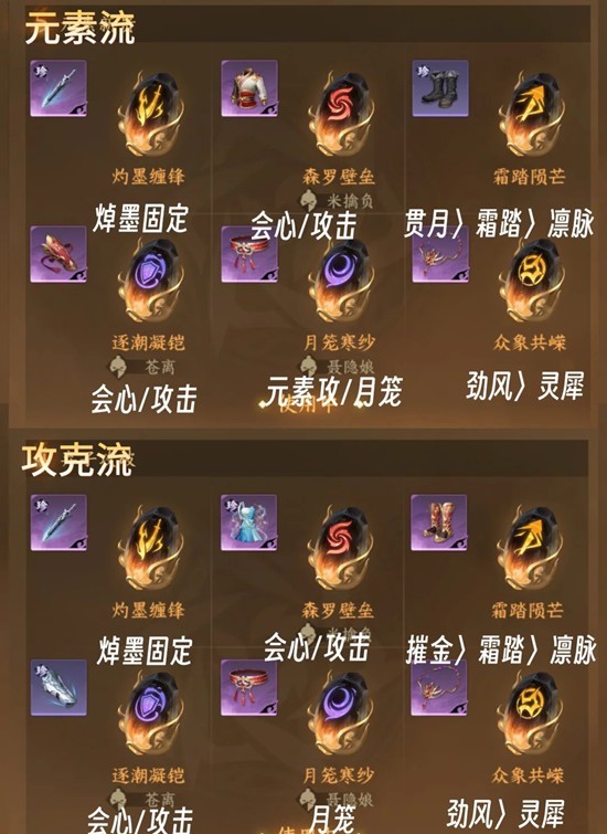 优先3金3火1木,需补充1木,词条占比可按主词条收益面板,词条优先原则,破霄+鸣镝+鸣沙决+昆吾优先级