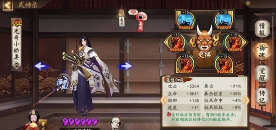 第一二回合直接鬼切普攻和花鸟普攻,靠鬼切反击搞定(注:第二回合会打得比较有点点慢,因为鬼切晕了,狰触发了但是反击不了)