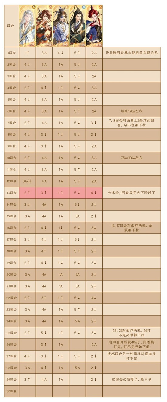 建议搭配文字食用,13回合阿香杀完对面一命,这个过程中啊,有阿香赌暴击,阿香赌安期助力什么的,可能打的快打的慢,但是最慢13回合要打完,你发现后面打不完前面可以多赌阿香的暴击和安期的助力。