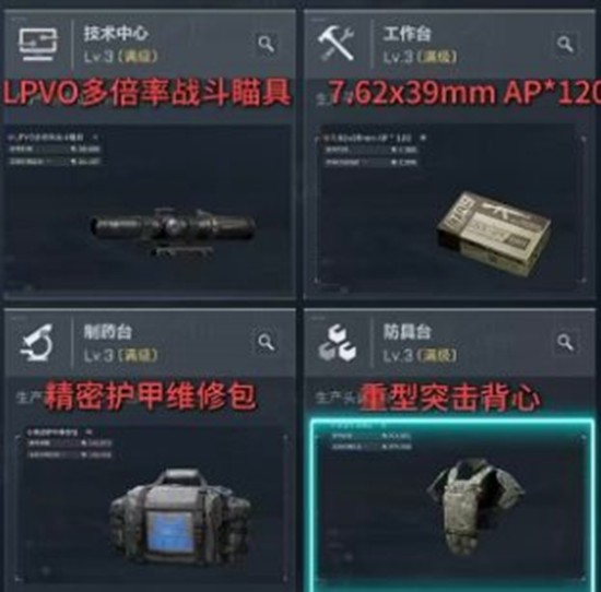工作台(Lv.3解锁):用于生产子弹和装备。