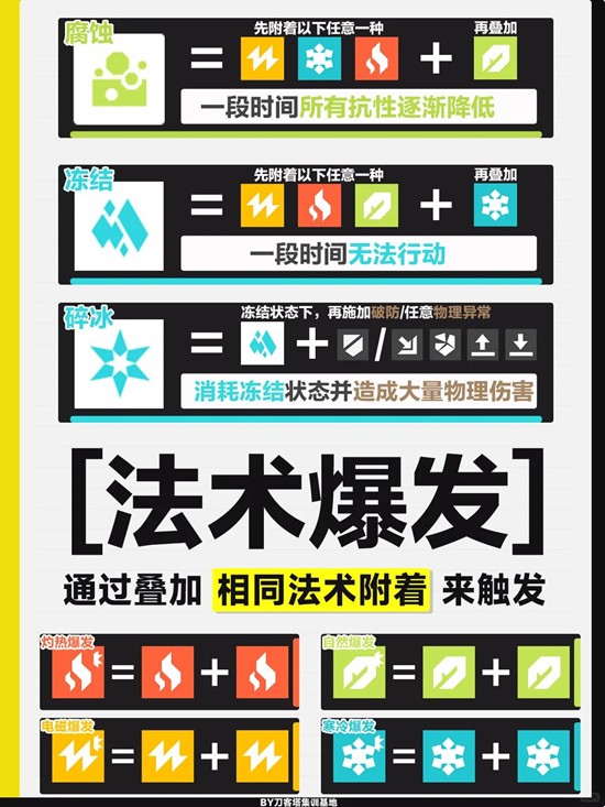玩法很丰富,配上各种法术异常,考虑到不同附着会全部被消耗掉,基本上会是一个队伍基本上只用两种法术异常即可