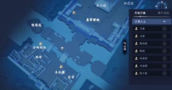 接取任务后,玩家需要依次与四位NPC进行对话。首先前往西市找到小吃摊摊主交谈,然后与摊主对面的万某对话,接着到桥边找到刘某互动,最后与桥另一边的十三娘对话。完成这四位NPC的对话后,返回丑婆处提交任务即可。