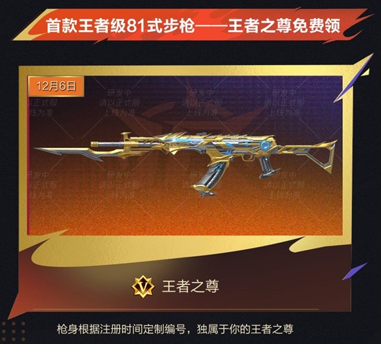 “十年每一枪,都有含金量”,从新手到老兵,汗水铸造荣耀,热血点燃战场激情~首款王者级81式步枪——王者之尊来袭,12月6日起限时免费获取!该武器以其华丽的金色外观和精致的设计令人叹为观止,枪械核心处的能量环格外眼熟,没错!就是“雷神”系列武器的经典能量环造型~致敬经典,展望未来!