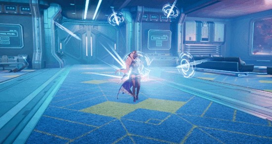 薇洛妮卡的基础普攻在地面状态下可连续发动五次攻击,形成稳定的输出节奏。在第1段和第2段普攻时进行长按操作,将激活名为“枪焰”的特殊效果,召唤来自天基系统的远程打击力量,对周围敌人造成范围伤害,具备较强的清场能力。若在第3段或第4段普攻过程中长按,则会触发“雷动”机制,展开一层防护护盾,并在释放结束后引发一次范围爆炸,进一步提升输出范围与生存能力。
