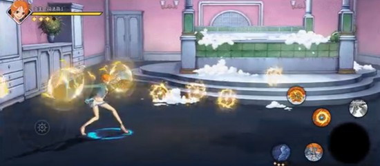 2技能“雷电冲锋”是司法岛奈美主要的突进手段。她将雷电能量注入天候棒后向前冲刺,途中可通过普攻提前引爆雷击,命中目标后追加一次强力电击。若冲刺未命中,则在终点处进行一次挥击补足伤害。这一设计使得该技能具备高度应变性,在航海王壮志雄心的快节奏对战中,能够灵活应对不同战况,无论是追击残血还是打断施法都十分有效。