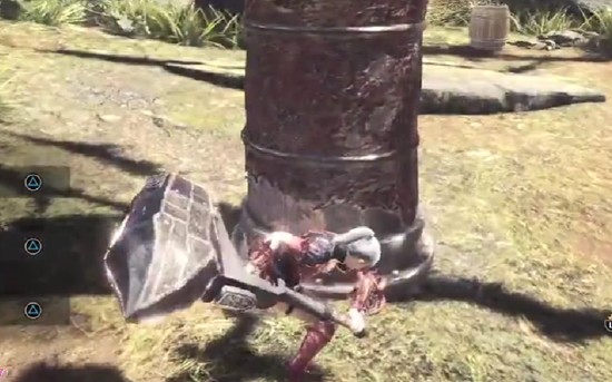 非蓄力攻击以轻击为主,三连轻击可穿插重击形成连招。任意一次轻击后均可衔接重攻击或轻攻击键,释放加强版回旋攻击。由于大锤在非蓄力状态下的前摇与后摇较短,具备良好的打断与机动衔接能力。实战中推荐先用轻攻击垫步起手,随后衔接重型攻击并立即翻滚调整位置,再通过轻击过渡至二段蓄力,完成“相杀”连贯输出。