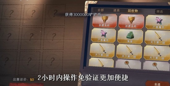 出售金色(及以上)物品:出售高价值物品时需要输入二级密码,保护您的珍贵物品不被轻易转移。