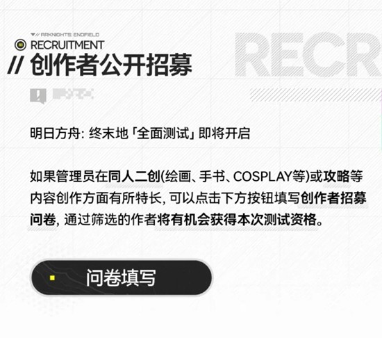 玩家专属通道:填份招募问卷,筛选通过直接解锁测试资格