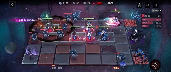 阿黛拉充能满之后开大然后立刻挪到打不到人的地方,尽量不消耗剪刀,一直持续到露核。期间我是把nox挪到后排开大刷小怪了(如图),这个看你角色练度,留到破核再开也可以。