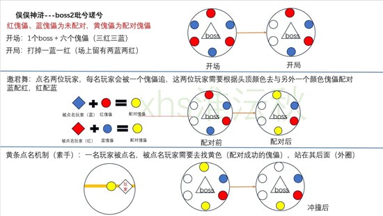③黄条点名机制(擢素手):被点名的玩家去站在黄色傀儡后,让黄条技能把黄色傀儡冲出场外