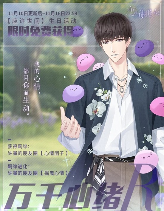 11月15日0:00起,和他共度生日仪式,完成生日特别互动剧情。
