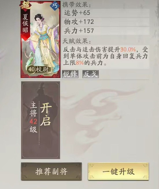 武将成长离不开副将的帮扶,夏侯昭是张飞的最佳副将人选。有了夏侯昭的加入,张飞的反击伤害能得到快速提升。夏侯昭提供的续航效果能让张飞的强大作战力持续更长时间,给敌人造成诸多负面伤害。