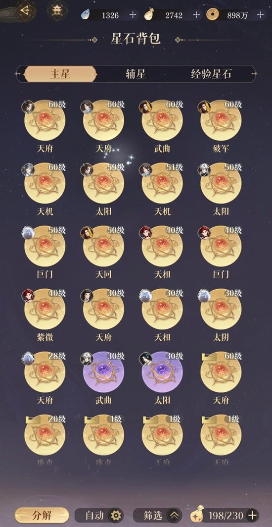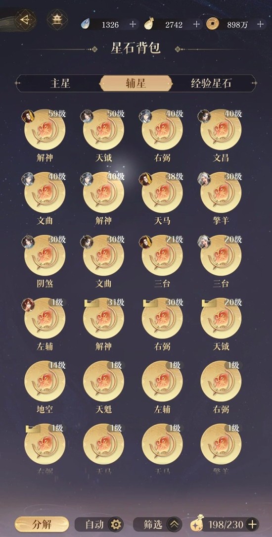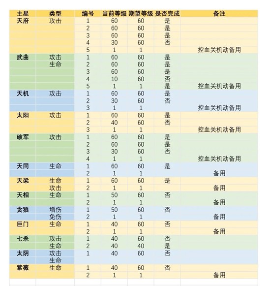 解神天钺>擎羊文昌>=文曲右弼>天魁天马左辅>阴煞三台天巫(基于如鸢各配队上场率)