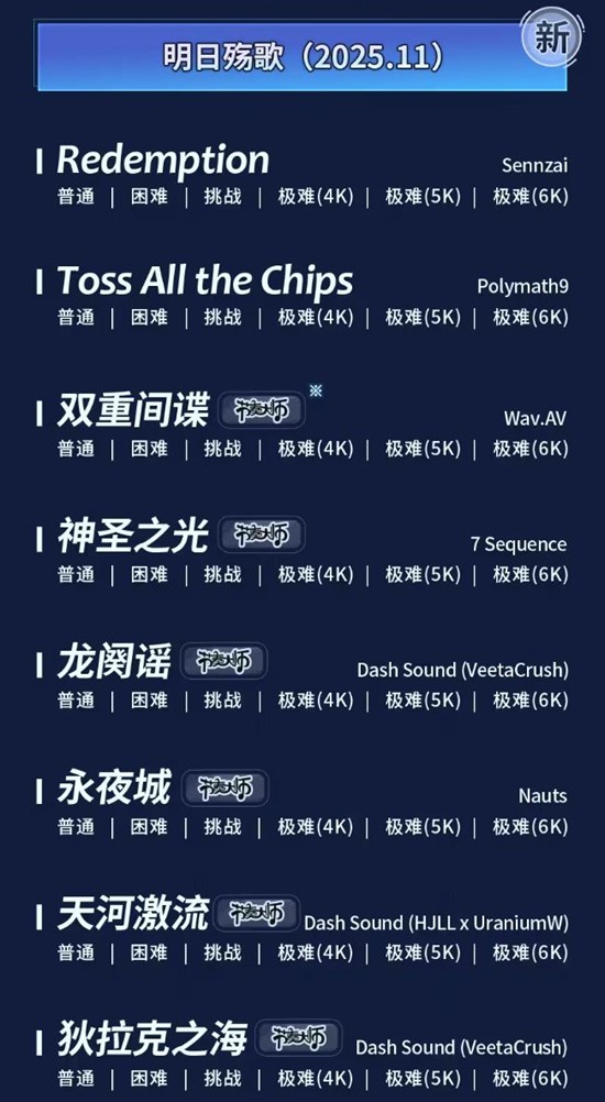 在4.6版本更新后,玩家将有机会游玩到来自《节奏大师》的六首特别联动曲目,这些曲目将为玩家带来全新的游戏体验: