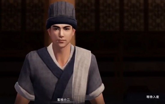 接取任务后需要等待夜晚才能继续推进剧情,玩家可以前往客栈找店小二选择住宿功能,然后点击等待入夜选项即可快速切换至夜晚场景。