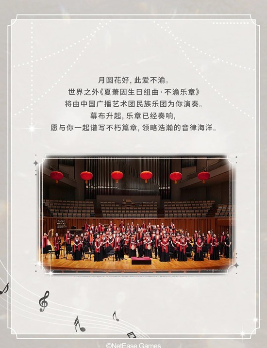 感谢玩家朋友们的支持和喜爱,由中国广播民族乐团奏响的《世界之外》夏萧因生日组曲《不渝乐章》,现已荣获好莱坞音乐传媒奖(HMMA)2025年「LIVE CONCERT FOR VISUAL MEDIA」提名。
