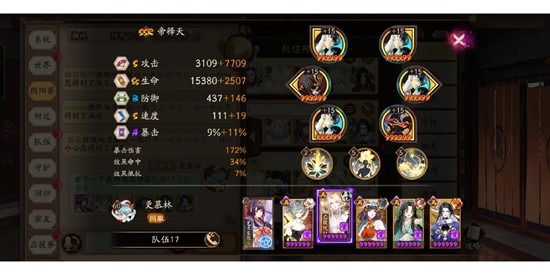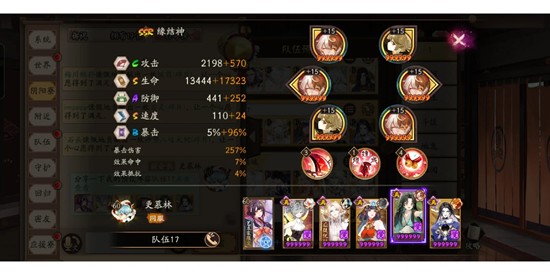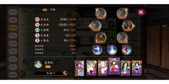 阵容:SSR蛇+千姬+SP追月神+缘结神+帝释天+神乐(疾风+炼狱)