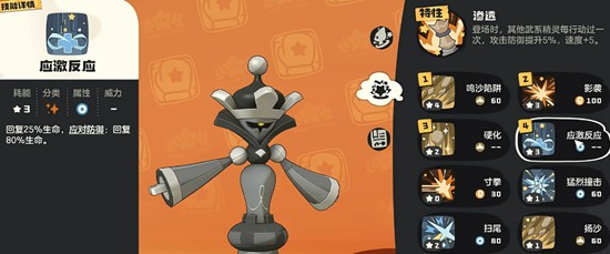 应激反应是一项兼具防御与回复的复合型技能,每当棋绮后受到攻击后可触发生命恢复效果。这项技能与硬化形成完美联动,使得她在承受连续打击时仍能维持可观血量。配合自身的高防御属性,应激反应大幅增强了棋绮后在持久战中的续航能力,使她在洛克王国世界的多段战斗场景中表现出色。