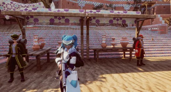向地图右上方移动,在沙漠之镇区域可找到11级与12级的两位流浪商人,他们通常出现在坐标342,361附近,位置相对固定且相邻。11级商人主要售卖耐热耐冷装备、各类弹药及武器,适合准备挑战极端气候地带的玩家。而12级商人则提供更多元素相关商品,如土系、草系技能果实,以及恢复类药品和日常杂货。