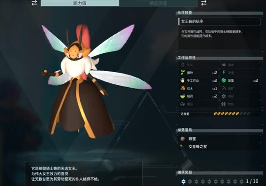 在战斗过程中,女皇蜂主要使用范围性毒系技能与近身突刺攻击,部分技能会在地面留下持续伤害区域。玩家需注意走位,避免被技能命中或陷入包围。她的攻击前摇较明显,具备一定反应时间,合理利用翻滚或闪避机制可有效规避大部分伤害。同时,队伍中配置抗毒属性的帕鲁将大幅提升生存能力。
