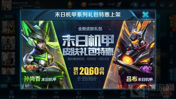 孙尚香和吕布末日机甲系列的皮肤礼包,首周折扣