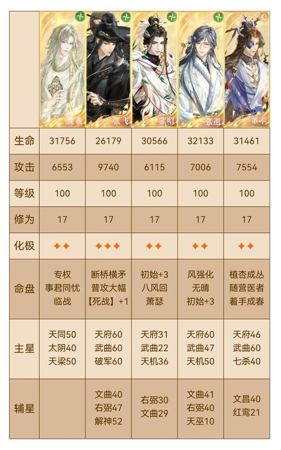 练度依旧需要2星,庞羲有没有事君无所谓,最好要无情邈,张昭推荐萧瑟