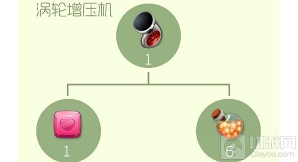 涡轮增压机合成公式=爱心晶石(红水晶能量泵*1+星辰之泪*3+七彩粘合剂*2)*1+宇宙能量块*6