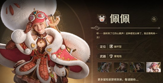 佩佩是怪物猎人旅人中一位人气颇高的角色,拥有粉色毛绒斗篷和甜美可爱的外观造型,属于典型的崩坏类型输出成员。她在战斗中主要使用重弩炮进行远程打击,具备稳定的火力输出能力与良好的控场表现。由于其技能机制偏向远距离作战,因此非常适合喜欢保持安全距离、通过精准射击压制敌人的玩家选择。在面对大型怪物时,佩佩能够发挥出色的持续输出优势。