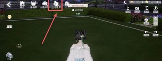 玩家进入以闪亮之名游戏主界面后,可以在页面顶部看到“生活服务”按钮,点击这个按钮会展开高级菜单。