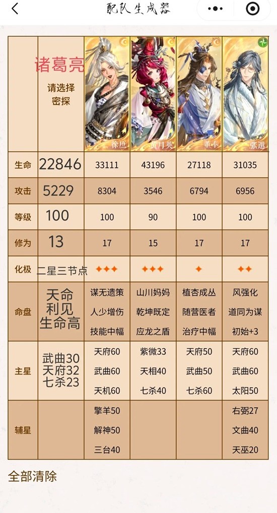 亮必备天命不要持续伤害盘,英必备乾坤,英的练度只需要无龙脉时能抗住就行了(不要铃盘!!!)
