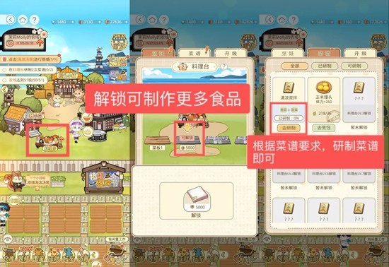【料理台】:研制菜谱后,做成的菜品可投喂给男主获得体力回复。