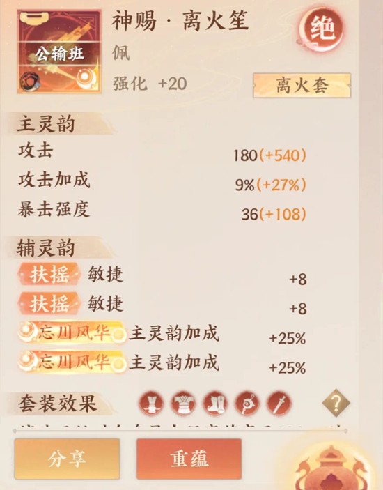 风荷武器一般辅助带都是防御(个别情况爆伤,如宋应星),配饰攻击加成,鞋子攻击加成。衣服帽子全生命加成。