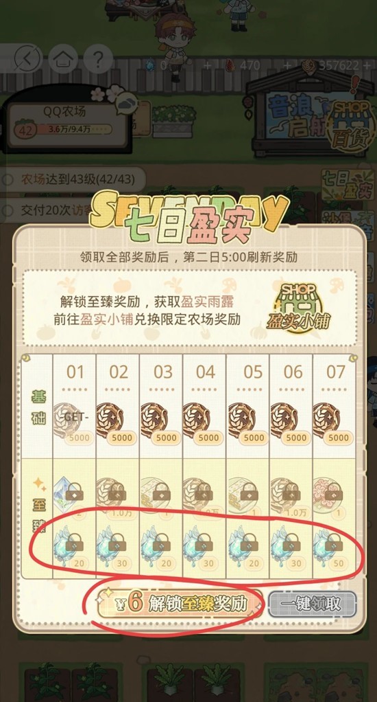 ②6r:在七日盈实处氪6r,签到7天可得200雨露+2北极星+2能量棒+1鲜花饼+3万农场币