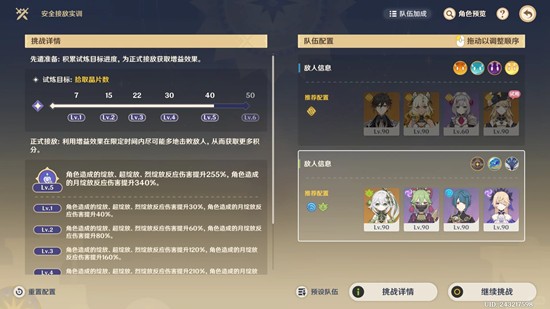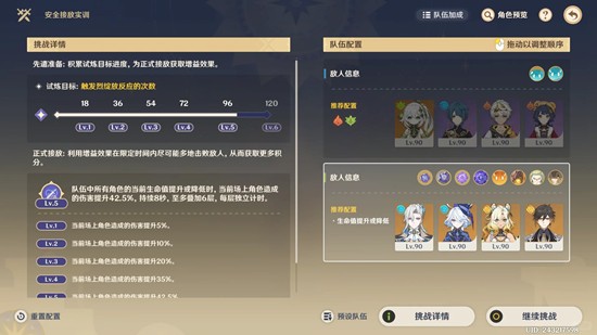 ●第一关用草神,行秋,班尼特,香菱,打到五级的增益。