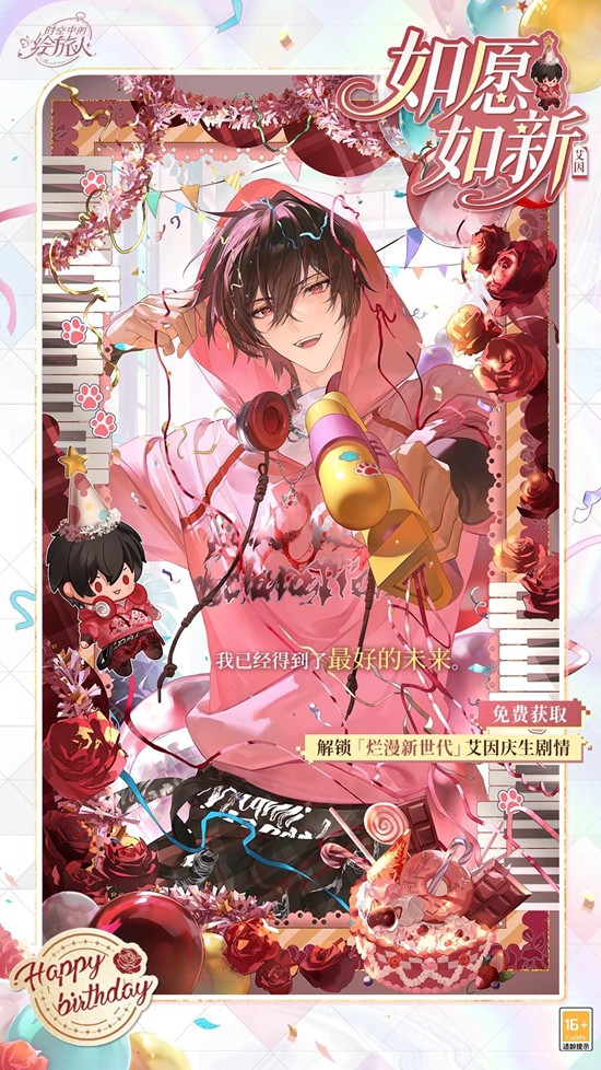 与艾因约好穿着今年的生日主题情侣校园装扮,开启[私人空间]约会,解锁他的台词互动;行至派对场景里,将触发2个特别互动动作,与他共度生日吧~