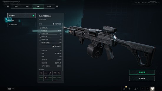 QJB201作为三角洲行动中的一线班用机枪,拥有高达100发的弹鼓容量,能够在不频繁换弹的情况下提供长时间的火力覆盖。其在满改状态下改装成本为60万,达到T1级别,腰射表现也经过优化,有效射程可达40米。在烽火地带模式中,QJB201的稳定弹道和高续航能力使其成为防守要道、楼梯口或据点时的优选武器,尤其适合在监狱、航天基地这类结构复杂、掩体众多的地图中发挥优势。