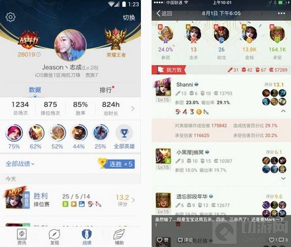 点击进入“战绩”界面,个人游戏数据、皮肤英雄资料轻松查询!