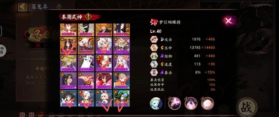 2.可以考虑充足鬼火,(没有也没关系其实,因为本期百鬼弈一轮下来基本上秒不掉对方输出,所以有转圜余地)优先选择spssr辉夜姬追月神,没有的话选择火灵御魂的式神(我打了勾的式神中有几个御魂是火灵的,所以基本选这些式神不会存在严峻缺火状态)