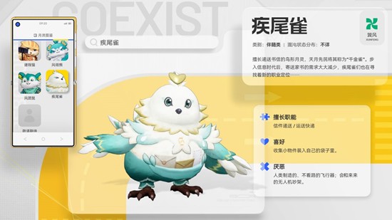擅长递送书信的鸟形月灵,天月先民将其称为“千金雀”。步入信息时代后,寄送家书的需求大大减少,疾尾雀们也在寻找着新的职业定位…