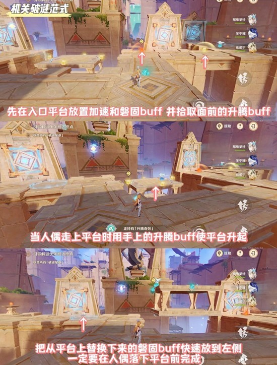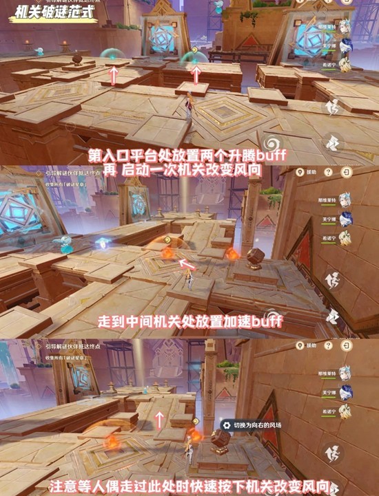 第入口平台处放置两个升腾buff 再启动一次机关改变风问