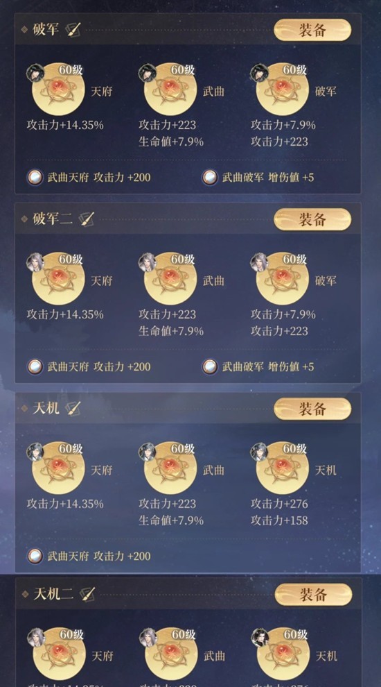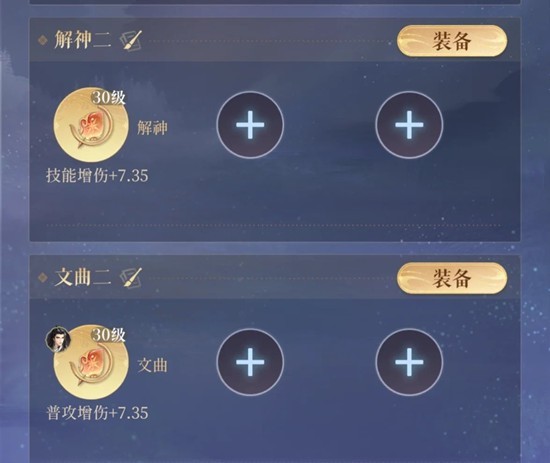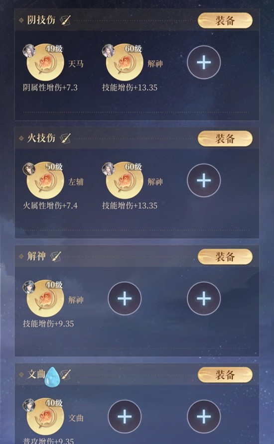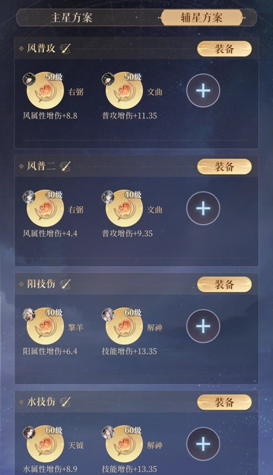 在有董奉上场,甄宓生命值高,反伤不容易被打满时,应该重视甄宓的增伤值,带“天机巨门贪狼”(注意冷知识:天机巨门+5增伤值)。