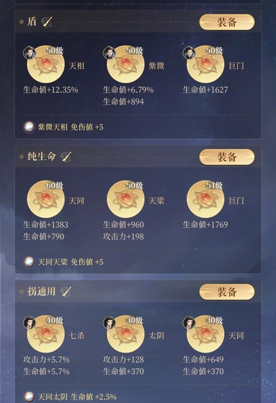 在没有董奉抬基础生命的火队上场时,反伤上限容易被打满,应该重视甄宓生命值,给甄宓狂堆生命星石,带“天相巨门天同”。