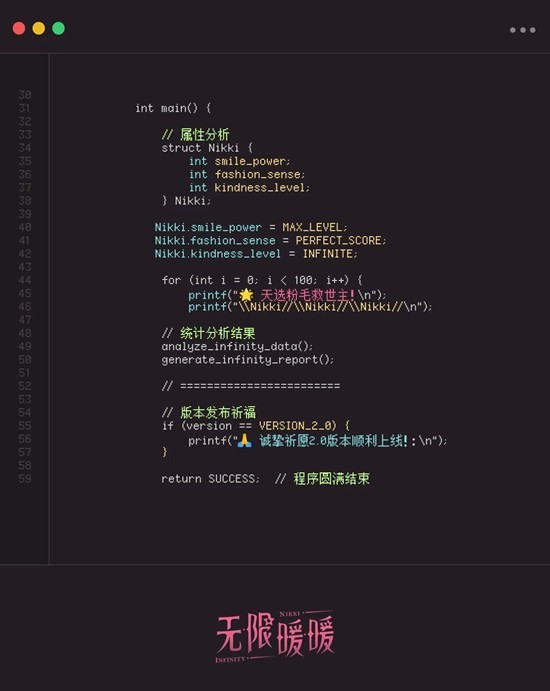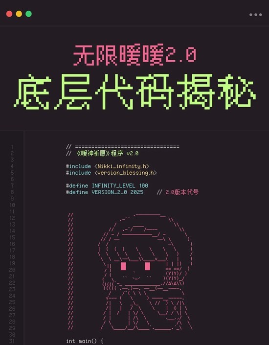 无限暖暖2.0版本「祷声起诸大地」伊赞启程预热开启~全网震撼首发!无限暖暖2.0版本「祷声起诸大地」前瞻特别节目即将播出,全新版本重磅情报即将揭晓,记得提前预约哦~刚从加密服务器扒下来的核心代码!据说能窥见 2.0 版本的底层逻辑 ——让我们一起来看!