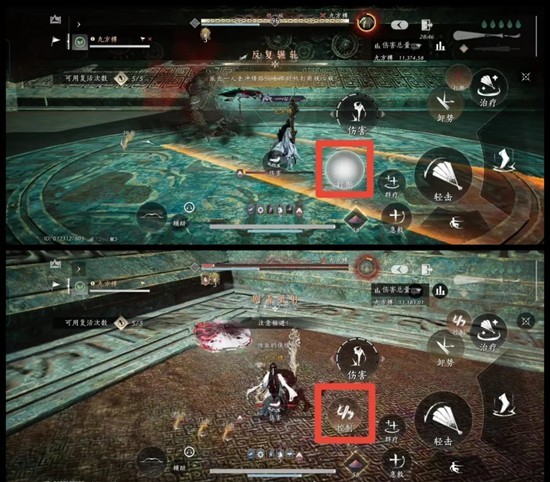 【反复辗轧】让有武器的站在黄条内,在感知技的位置按“打断”,通常需要完成两轮共四次翻滚,打断一次削一半盾。失败一次+50流血(←注意量词是次),失败两次就可以准备重开了。