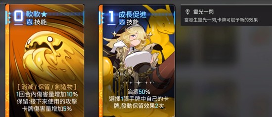 成长促进是一张1费技能卡,可为单体提供50%生命值的治疗,并触发两次预留效果。升级后还能复制一张现有的创造物卡牌,极大提升了资源利用率。在卡厄思梦境的战斗中,这张技能常用于过渡阶段维持血线,同时加速创造物体系的成型,是衔接前期与中期的关键环节。